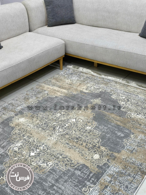 فرش ماشینی کاشان طرح ۶۱۹ ترنج دار برجسته